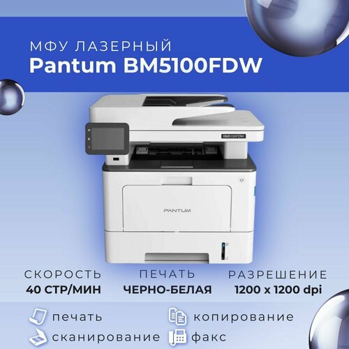 МФУ лазерный Pantum BM5100FDW - это компактное и эффективное многофункциональное устройство, предназначенное для профессиональной печати, сканирования и копирования документов в черно-белом цвете. Сочетание высокого качества печати, быстрой скорости и удобства использования делает его отличным выбором для домашнего офиса, небольшого бизнеса или личного пользования.