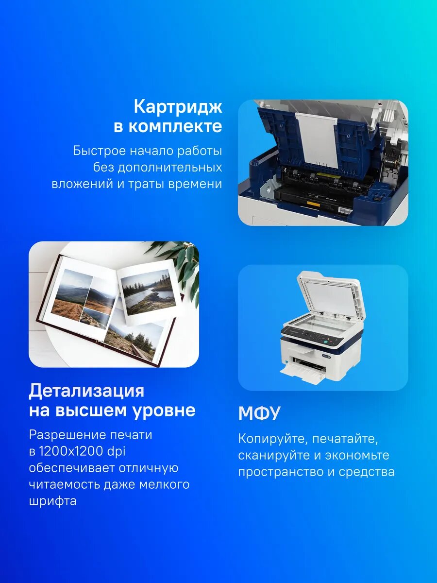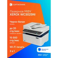 XEROX WorkCentre WC3025NI – компактная модель белого цвета, она идеально подойдет для небольшого офиса. Благодаря скорости печати 20 стр./мин работа с документами не занимает много времени. Плотность используемой бумаги от 60 до 163 г/м2, поэтому нужную для определенных задач можно подобрать без труда. Например, для неважных файлов подойдет самый простой и доступный тип.
