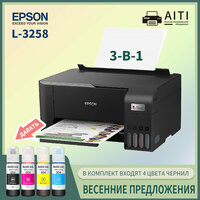 Купить МФУ Струйное Epson L3258, A4 Wi-Fi оригинал Набор чернил для СНПЧ с доставкой по всей России.