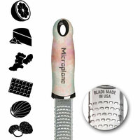 Применение к твердым сырам, имбирю, чесноку и специям демонстрирует многофункциональность терки Microplane. Лезвия, изготовленные из нержавеющей стали, создают ровные и аккуратные стружки, которые превосходно подходят как для кулинарных шедевров, так и для повседневных блюд.