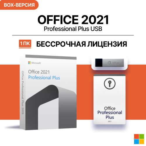 В целом, коробочная версия Microsoft Office Pro Plus 2021 - это надежный и удобный инструмент для работы с документами, таблицами и презентациями. Он поставляется в виде USB-ключа, что позволяет начать работу сразу после установки, и включает все необходимые компоненты для установки и использования.