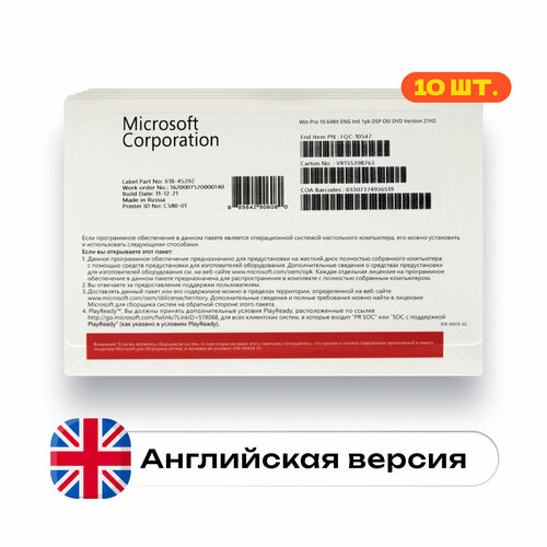 Купить Microsoft Windows 10 PRO DVD English, мультиязычная, английская, русская версия — 10 штук комплект с доставкой по всей России. Microsoft Windows 10 PRO DVD English, мультиязычная, английская, русская версия — 10 штук комплект: сравнение цен, характеристики, фото, актуальное наличие и цены.