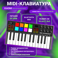 Xiaomi 25 Keys MIDI Keyboard MD03 - это контроллер с питанием от USB и 25-MIDI клавиатурами, чувствительными к нажатию, для студийного производства, управления виртуальным синтезатором. Он очень компактный, его можно подключить по беспроводной сети к устройству через Bluetooth.