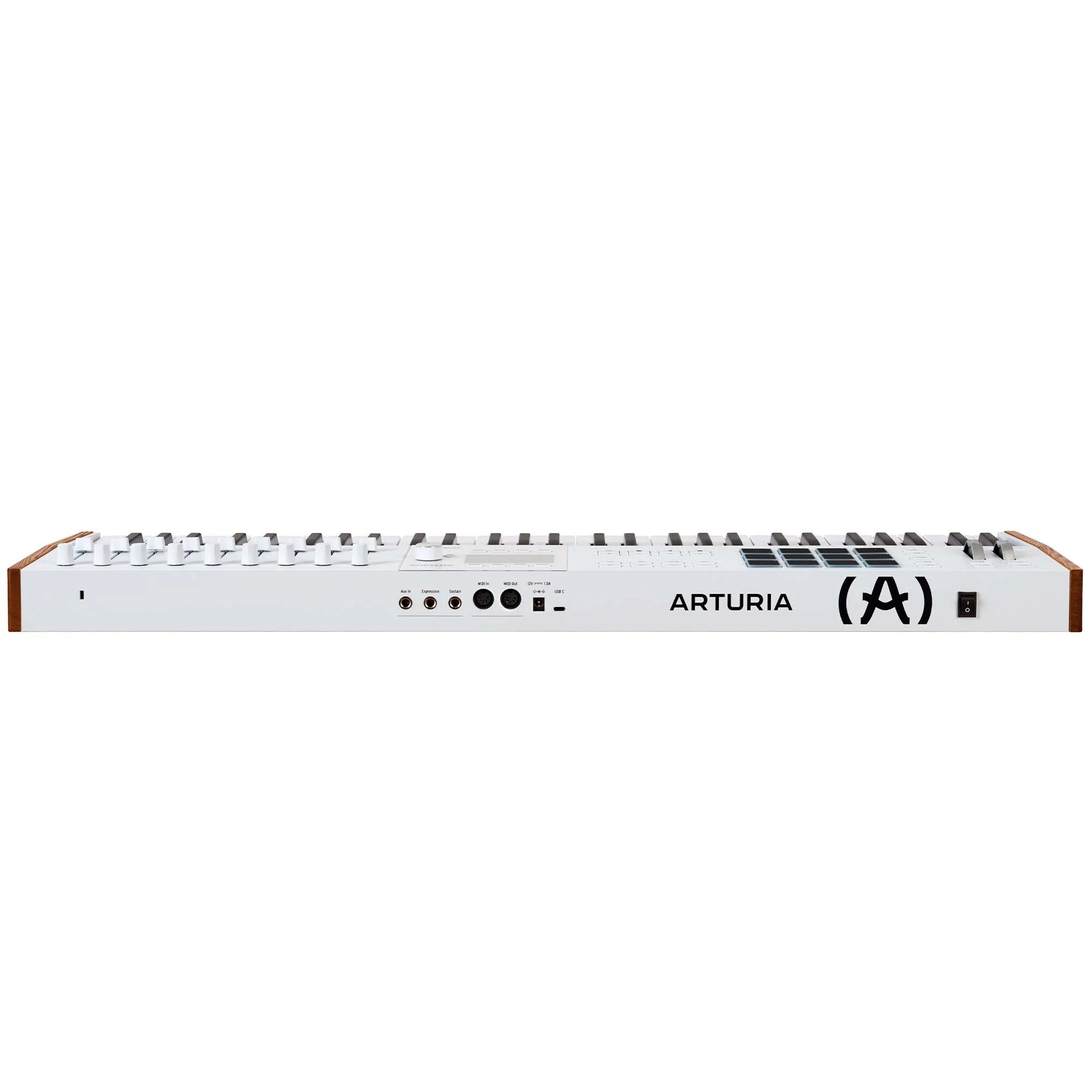 разъемы под педали экспрессии и сустейна, четыре выхода и один вход CV с управлением гейтом, питчем и модуляцией, порты MIDI и USB и 3 дополнительных входа Aux;