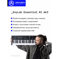 MIDI клавиатура Arturia KeyLab Essential 61 mk3 Black - это профессиональное решение для тех, кто ищет надежный и функциональный инструмент для создания музыки. Arturia KeyLab Essential 61 mk3 Black оснащена 61 полноразмерной клавишей, что обеспечивает удобство и точность при игре. Клавиши имеют невзвешенную жесткость, что позволяет вам легко контролировать динамику и силу нажатия. На панели управления вы найдете 9 энкодеров, 8 пэдов, 9 фейдеров, 12 кнопок управления, а также колеса высоты тона и модуляции. Это позволяет вам легко и быстро управлять различными параметрами звука, включая громкость, панорамирование, эффекты и многое другое. MIDI клавиатура оснащена 1/4" Jack входом для педали и MIDI выходом, что позволяет подключать дополнительные педали и внешние устройства для управления звуком. Arturia KeyLab Essential 61 mk3 Black имеет LCD дисплей, который отображает всю необходимую информацию о настройках и состоянии инструмента. Питание MIDI клавиатуры осуществляется от порта USB или от сети, что делает ее удобной для использования в любом месте. Arturia KeyLab Essential 61 mk3 Black совместима с большинством DAW, что позволяет легко интегрировать ее в вашу рабочую среду. Выбирая MIDI клавиатуру Arturia KeyLab Essential 61 mk3 Black, вы получаете надежный и функциональный инструмент, который поможет вам создавать музыку высокого качества.