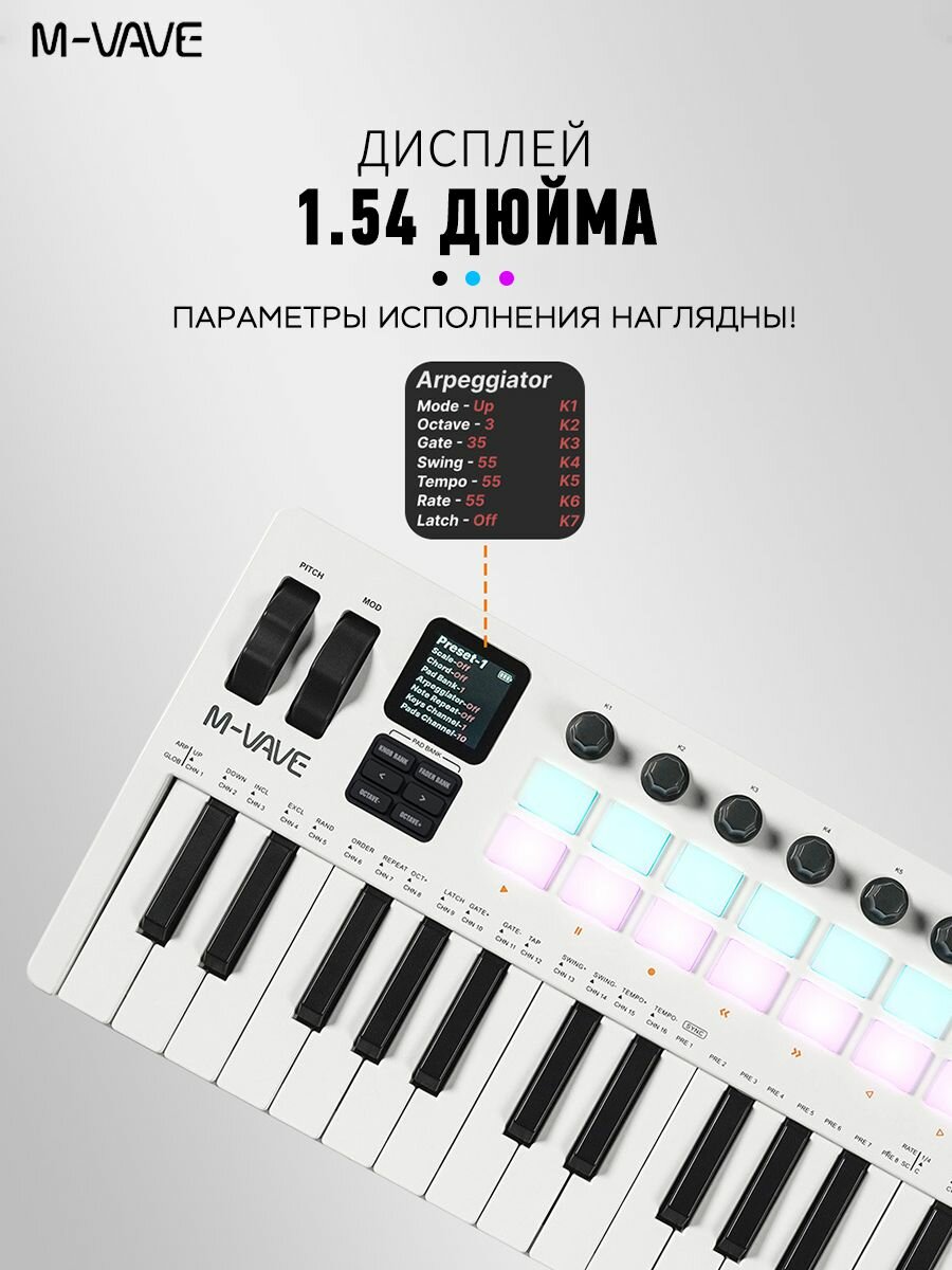 Купить MIDI-клавиатураM-VAVE 37-клавишный контроллер USB MIDI клавиатуры SMK-37 PRO с доставкой по всей России.
