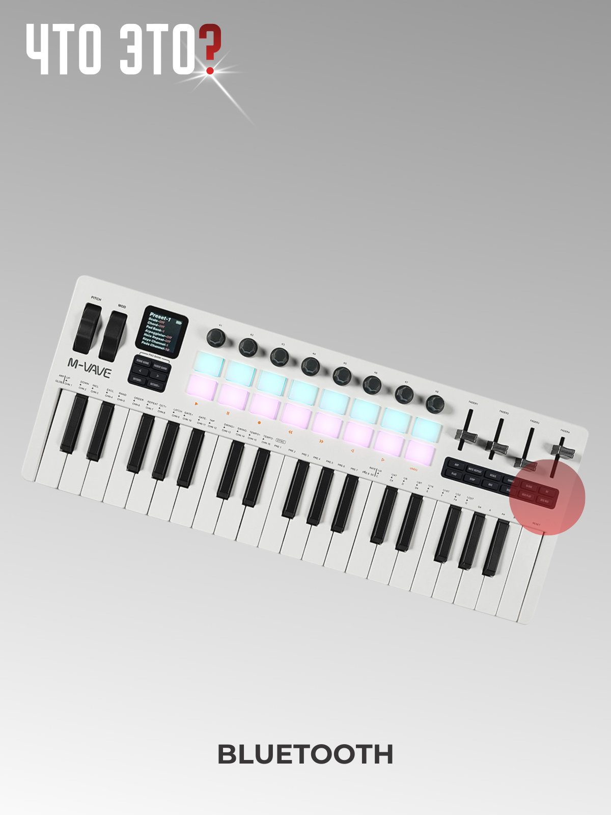 ● Поддержка беспроводного подключения к Windows / Mac / ios / Android (пользователям Windows необходимо поддерживать BT 5.0 и дополнительные драйверы BLE Midi).