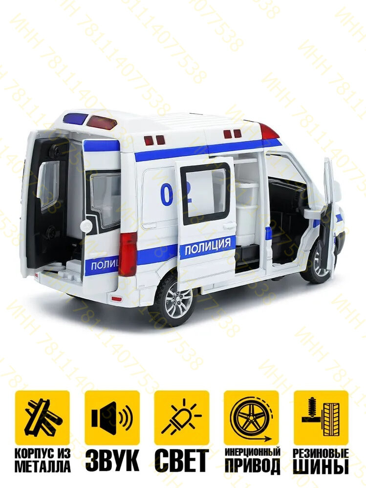 Микроавтобус мерседес «Полиция», машинка металлическая, длина 15 см, открываются двери, задние двери, световые и звуковые эффекты: сравнение цен, характеристики, фото, актуальное наличие и цены.