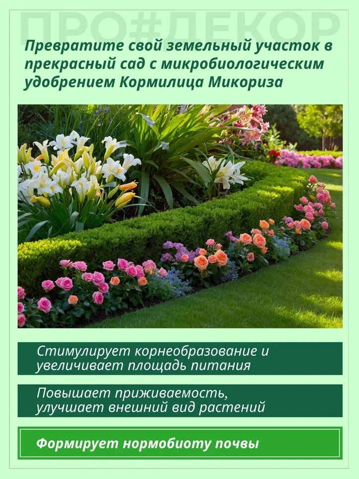 Споры микоризного гриба рода Rhizophagus: 1000 спор/г – набор специально подобранных штаммов для; цветов, декоративных кустарников и деревьев, хвойных. Споры и живые клетки:; азотофиксирующих бактерий Azotobacter chrooccocum, титр не менее 1х10 КОЕ/г; Фосформобилизующих бактерий Bacillus megaterium, титр не менее 1х10 КОЕ/г; Содержание питательных веществ в пересчете на сухое вещество:; органическое вещество: не менее 40 %; калиевые соли гуминовых и фульвокислот не менее 25 %; макроэлементы, не менее: общий азот – 2%; общий фосфор – 2 %; общий калий – 2 %