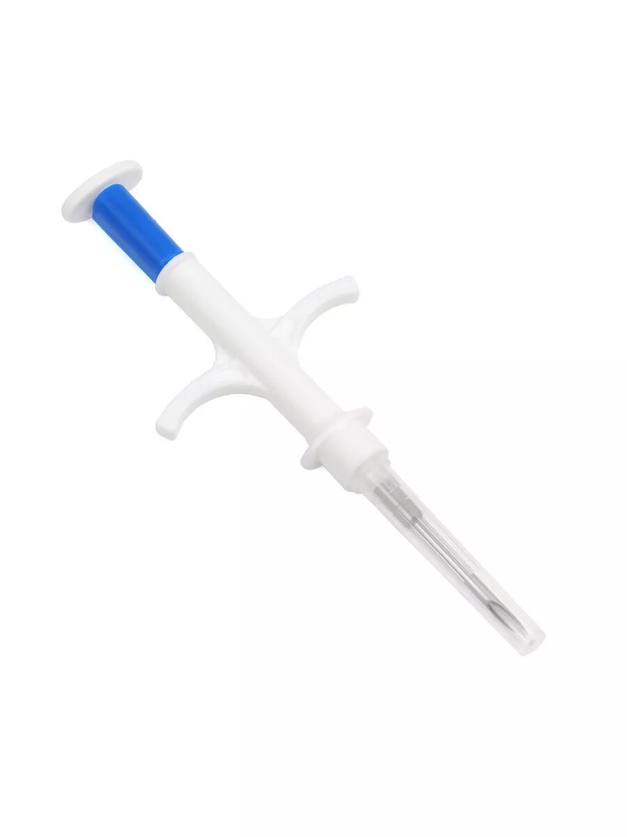 Игла имеет алмазную заточку и закрыта пластиковым колпачком для безопасности транспортировки.