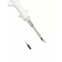 Игла имеет алмазную заточку и закрыта пластиковым колпачком для безопасности транспортировки.