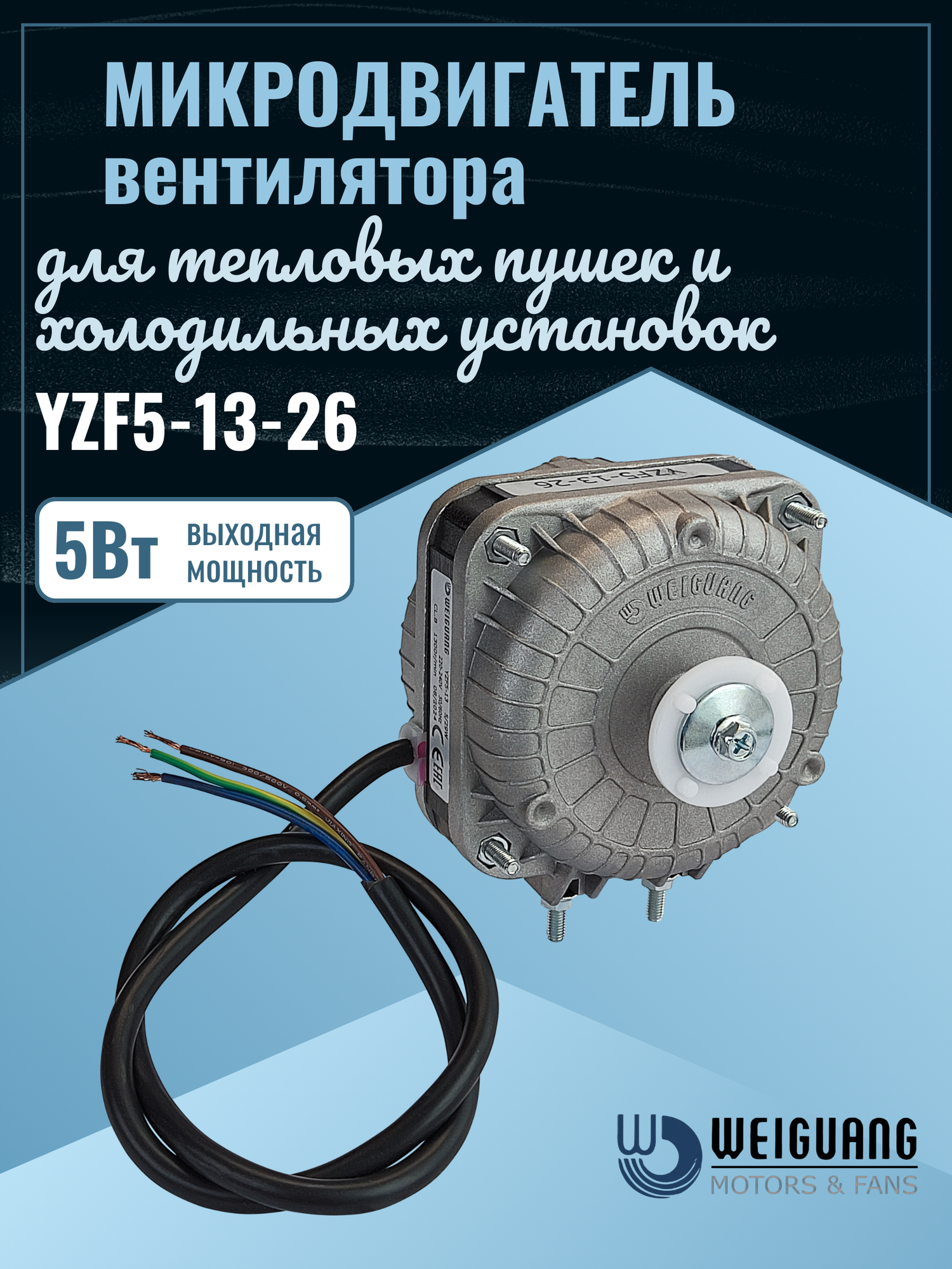 Микродвигатель Weiguang YZF5-13-26 5Вт 230В для тепловентиляторов, холодильных установок: сравнение цен, характеристики, фото, актуальное наличие и цены.