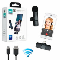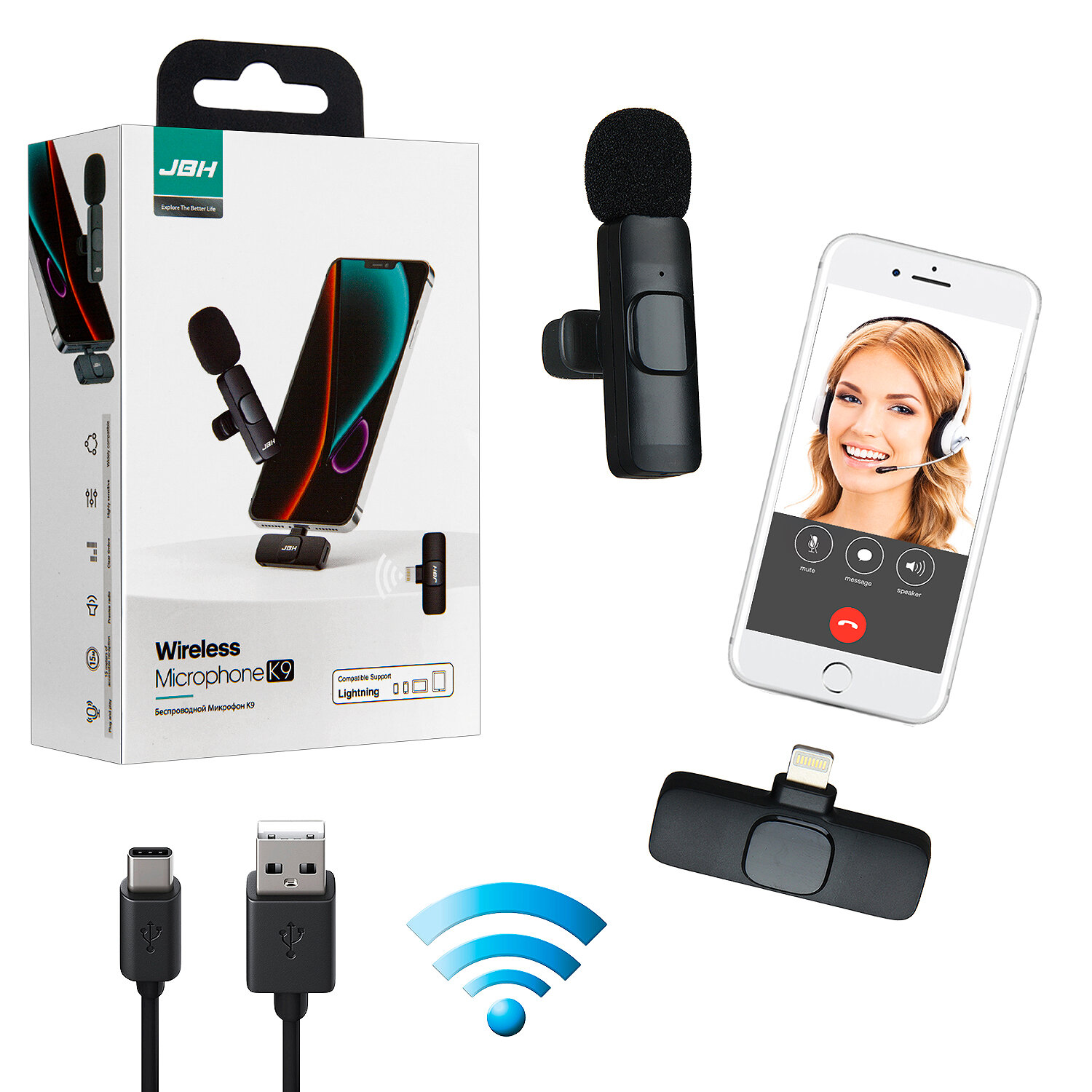 Комплект из 2 беспроводных петличных микрофонов JBH K9 для iPhone или iPad - удобное и современное устройство для записи звука и видео с качественным голосом. Предназначены для телефонов и планшетов Apple. Приемник подсоединяется к разъему Lightning (8-pin) напрямую без переходников. Plug & Play. Подключаются сразу, никаких дополнительных программ и настроек не требуется. Без проводов. Микрофоны после нажатия кнопки включения синхронизируются с приемником за секунду. Включать Bluetooth не требуется. Легкие петличные беспроводные микрофоны имеют минимальный размер и вес. Их можно использовать не только дома, но и в любом другом месте. Качественный звук. Петличные микрофоны имеют функцию активного подавления внешних шумов, что будет особенно актуально при записи на улице - будет слышно только голос. Ловят сигнал на расстоянии до 20 метров. Премиальный дизайн. Лаконичные линии и качественные материалы. Заряжаются через разъём Type-С. Кабель для зарядки микрофонов в комплекте. Два беспроводных микрофона петлички - удобное решение для журналистов, блогеров, вокалистов и музыкантов, для записи роликов, прямых эфиров и трансляций, интервью, онлайн тренингов, презентаций и обучающих материалов, в том числе на улице. Инструкция по применению: 1. Подзарядите микрофоны. 2. Вставьте ресивер в разъем Lightning вашего смартфона или планшета Apple. На других устройствах (в т. ч. Android) микрофон работать не будет, даже при использовании качественных переходников. 3. Включите микрофоны - нажмите кнопку на них. Лампочка начнет мигать попеременно красным и зеленым цветом. 4. Дождитесь, пока микрофоны синхронизируются с ресивером. Индикаторы перестанут мигать и загорится непрерывный зеленый свет на каждом из микрофонов. 5. Приступайте к записи через нужное вам приложение. 6. Обязательно извлеките ресивер из разъема для прослушивания звука или просмотра видео, иначе будет тишина. При низком заряде батареи световой индикатор начнет медленно мигать красным светом.