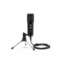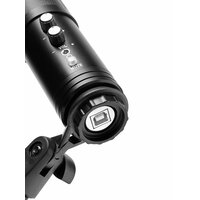 На корпусе имеется сенсорная кнопка включения и выключения микрофона (зеленая – вкл, красная – выкл.). Настройка RGB подсветки происходит нажатием одной кнопки (если нажать и удерживать, то подсветка выключится). Регулятор громкости, регулятор чувствительности микрофона на нижней части устройства. В комплекте также идет стойка с прорезиненной ножкой, он устойчив на столе и не царапает поверхность. Подключение через TYPE-C для лучшей записи звука (не требует скачивания каких-либо приложений или программ). Подключается с ПК и ноутбуком, а также с телефоном при наличии переходника OTG (телефон должен поддерживать передачу данных через разъем зарядки).