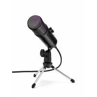 Имеется 4 режима подсветки, 7 цветов, которые создают неповторяемую атмосферу. Силиконовое антивибрационное кольцо, кардиоидный капсюль и POP-фильтр (поп-фильтр) – дают чистый и объемный звук, передачу звука без задержек и посторонних шумов. Длина кабеля 1,8 м (180 см) позволяет свободно расположить микрофон на рабочем столе. Чувствительность – 40дБ, частотный диапазон – 30Гц - 20КГц. Вес – 300 г.