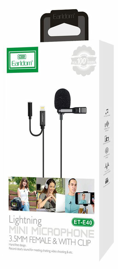 Купить Микрофон Earldom ET-E40 Lightning 8-pin, AUX, 2м (черный) с доставкой по всей России. Микрофон Earldom ET-E40 Lightning 8-pin, AUX, 2м (черный): сравнение цен, характеристики, фото, актуальное наличие и цены.
