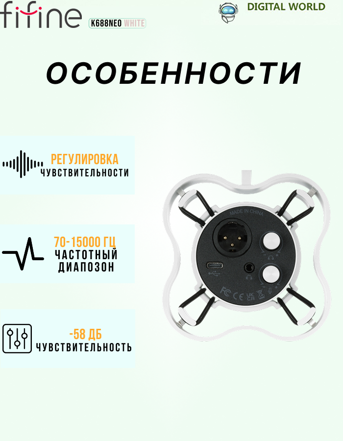 Купить Микрофон Fifine K688NEO, проводной, настольный, USB Type-C, XLR, белый с доставкой по всей России. Микрофон Fifine K688NEO, проводной, настольный, USB Type-C, XLR, белый: сравнение цен, характеристики, фото, актуальное наличие и цены.