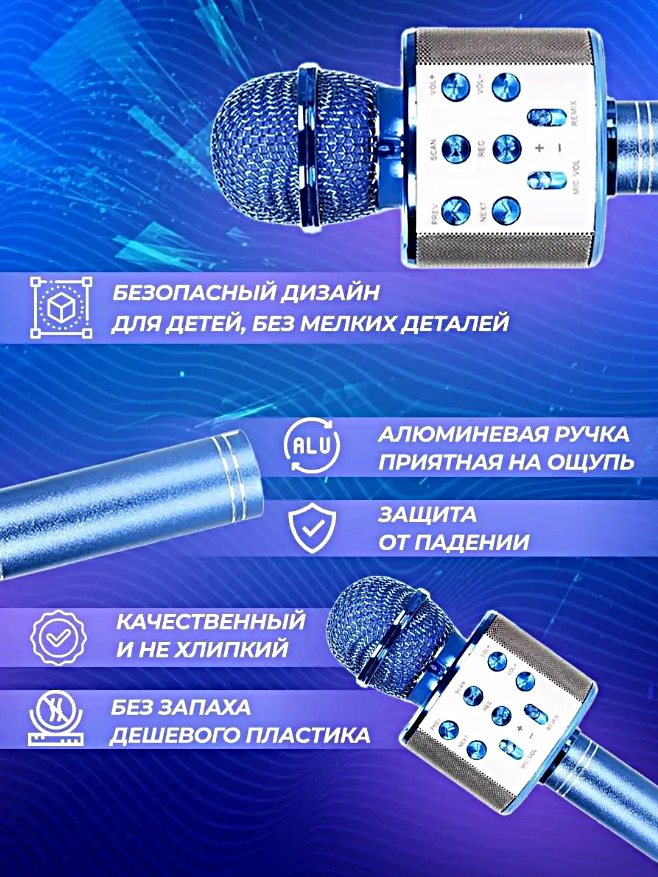 Микрофон караоке беспроводной, Микрофон беспроводной Bluetooth со встроенной колонкой для караоке вечеринок, Голубой: сравнение цен, характеристики, фото, актуальное наличие и цены.