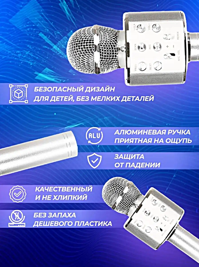 Микрофон караоке беспроводной, Микрофон беспроводной Bluetooth со встроенной колонкой для караоке вечеринок, Серебристый: сравнение цен, характеристики, фото, актуальное наличие и цены.