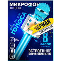 Купить Микрофон караоке беспроводной, Микрофон WS Bluetooth со встроенной колонкой для караоке, вечеринок, Голубой с доставкой по всей России.