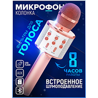 Купить Микрофон караоке беспроводной, Микрофон WS Bluetooth со встроенной колонкой для караоке, вечеринок, Розовый с доставкой по всей России.
