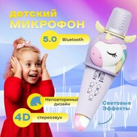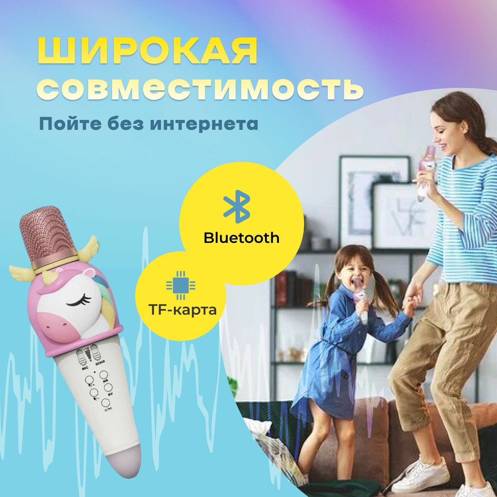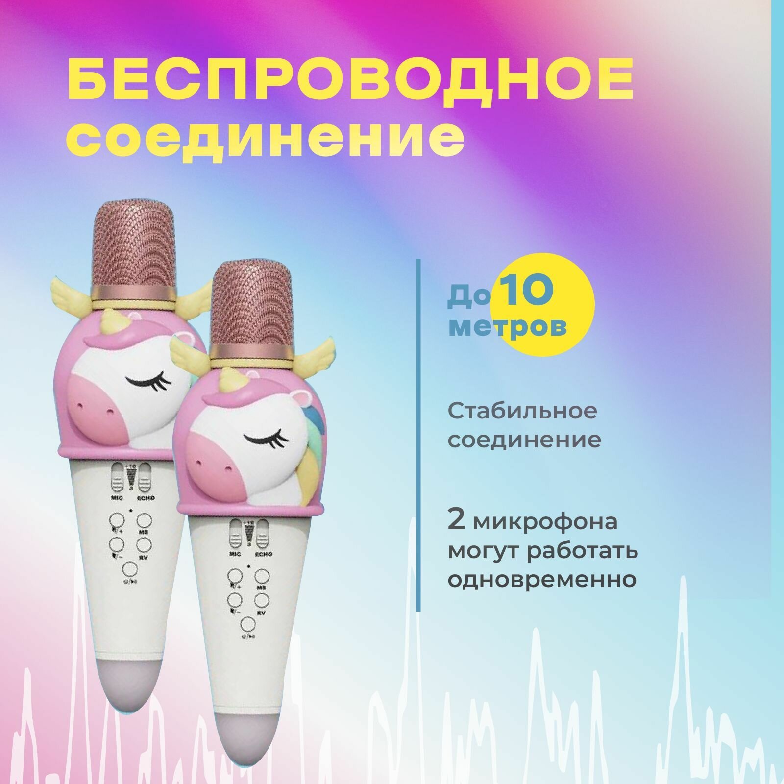 Купить Микрофон караоке музыкальный детский, беспроводной блютуз, Единорог, фиолетовый с доставкой по всей России.