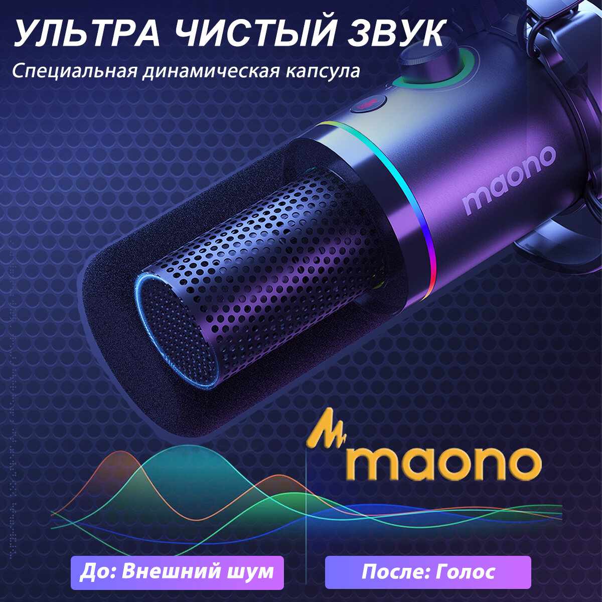 Поддержка ПО Maono Link: данное ПО позволяет более гибко настраивать ваш микрофон благодаря встроенному эквалайзеру. Также Maono Link отвечает за настройку RGB подсветки микрофона