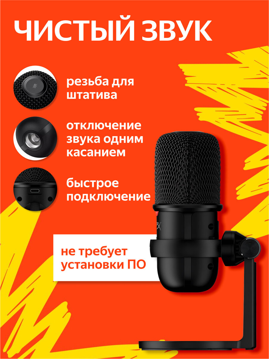 Микрофон проводной HyperX SoloCast, комплектация: микрофон, разъем: USB, черный: сравнение цен, характеристики, фото, актуальное наличие и цены.