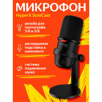 Микрофон проводной HyperX SoloCast, комплектация: микрофон, разъем: USB, черный