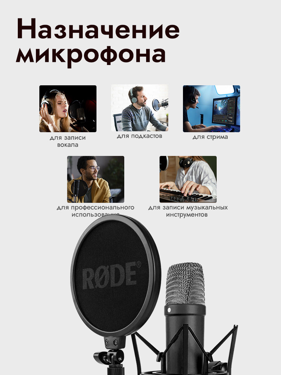 Амортизатор, поп-фильтр, чехол и кабель XLR в комплекте.