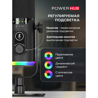 Микрофон оснащен RGB-подсветкой, которая добавляет эстетическую привлекательность и позволяет настроить цвет в соответствии с вашими предпочтениями.