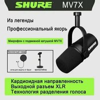 Купить Микрофон студийный Shure MV7X, черный с доставкой по всей России. Микрофон студийный Shure MV7X, черный: сравнение цен, характеристики, фото, актуальное наличие и цены.
