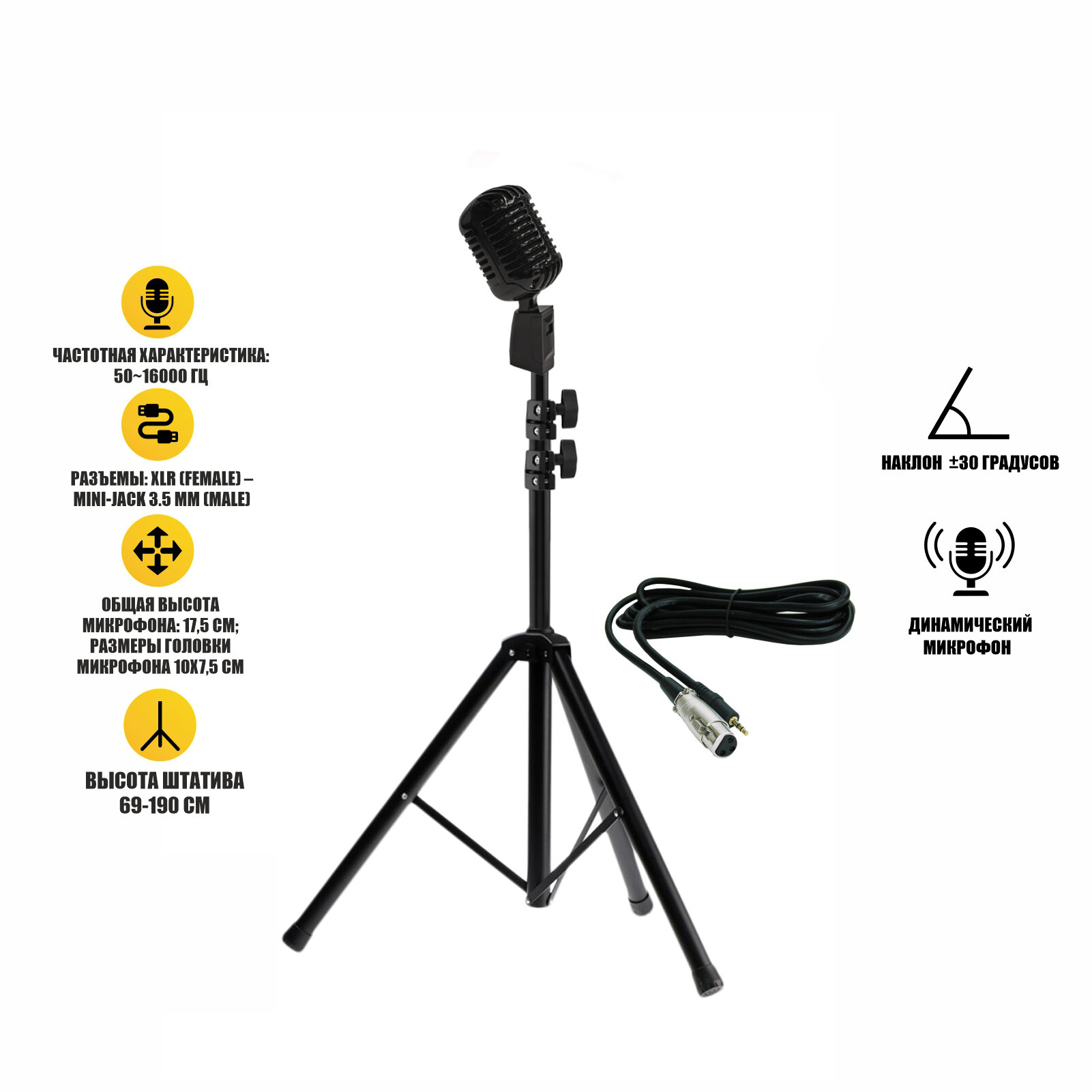 Купить Микрофон винтажный черный, кабель 2.5 м XLR (female) – mini-jack 3.5 mm (male), на напольной стойке JBH с доставкой по всей России. Микрофон винтажный черный, кабель 2.5 м XLR (female) – mini-jack 3.5 mm (male), на напольной стойке JBH: сравнение цен, характеристики, фото, актуальное наличие и цены.