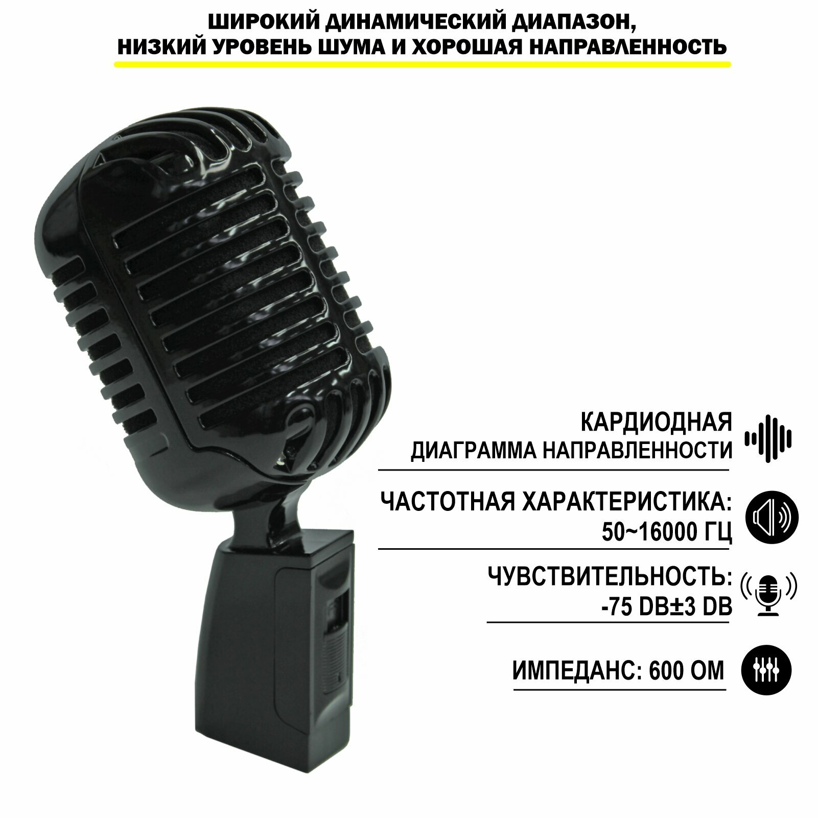 Профессиональный динамический микрофон отличается широким динамическим диапазоном, низким уровнем шума и хорошей направленностью. Специально предназначен для звукозаписи, вещаний, или семейного караоке.