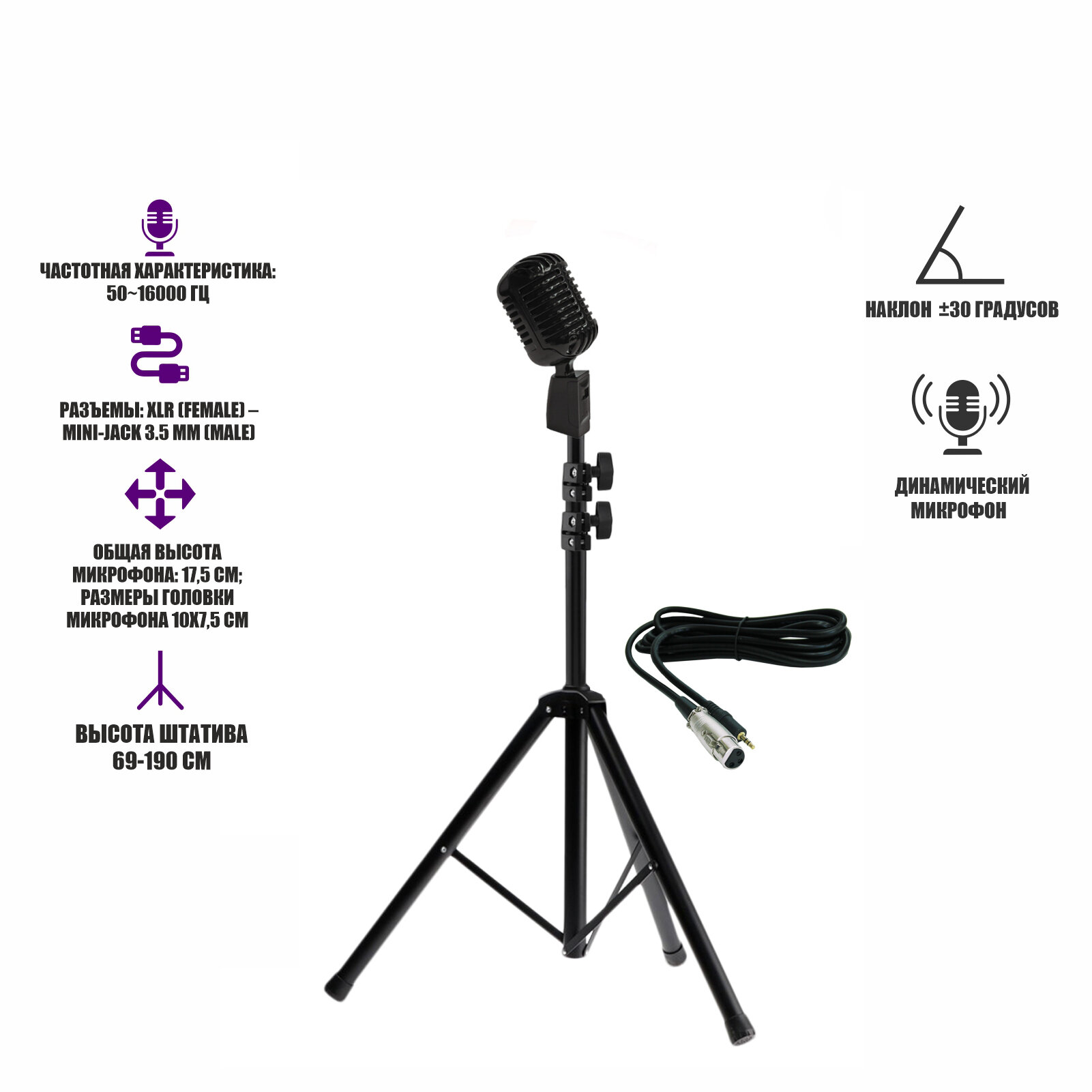 Купить Микрофон винтажный черный, кабель 3 м XLR (female) – mini-jack 3.5 mm (male), на напольной стойке JBH с доставкой по всей России. Микрофон винтажный черный, кабель 3 м XLR (female) – mini-jack 3.5 mm (male), на напольной стойке JBH: сравнение цен, характеристики, фото, актуальное наличие и цены.