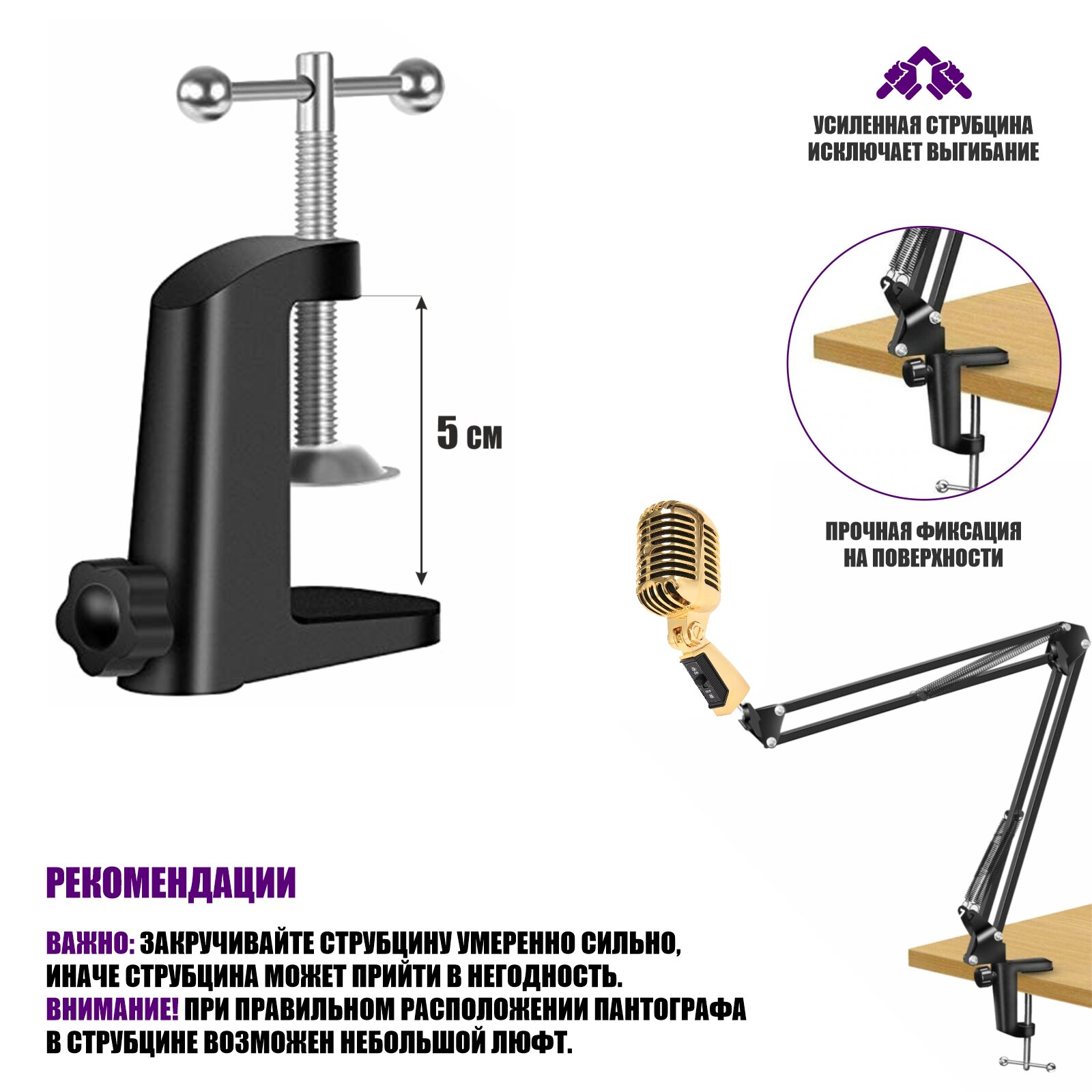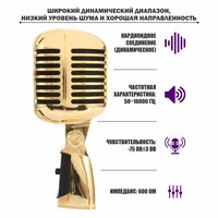 Купить Микрофон винтажный золотой, кабель 2.5 м XLR (female) – mini-jack 3.5 mm (male), на пантографе ST с усиленной струбциной с доставкой по всей России.