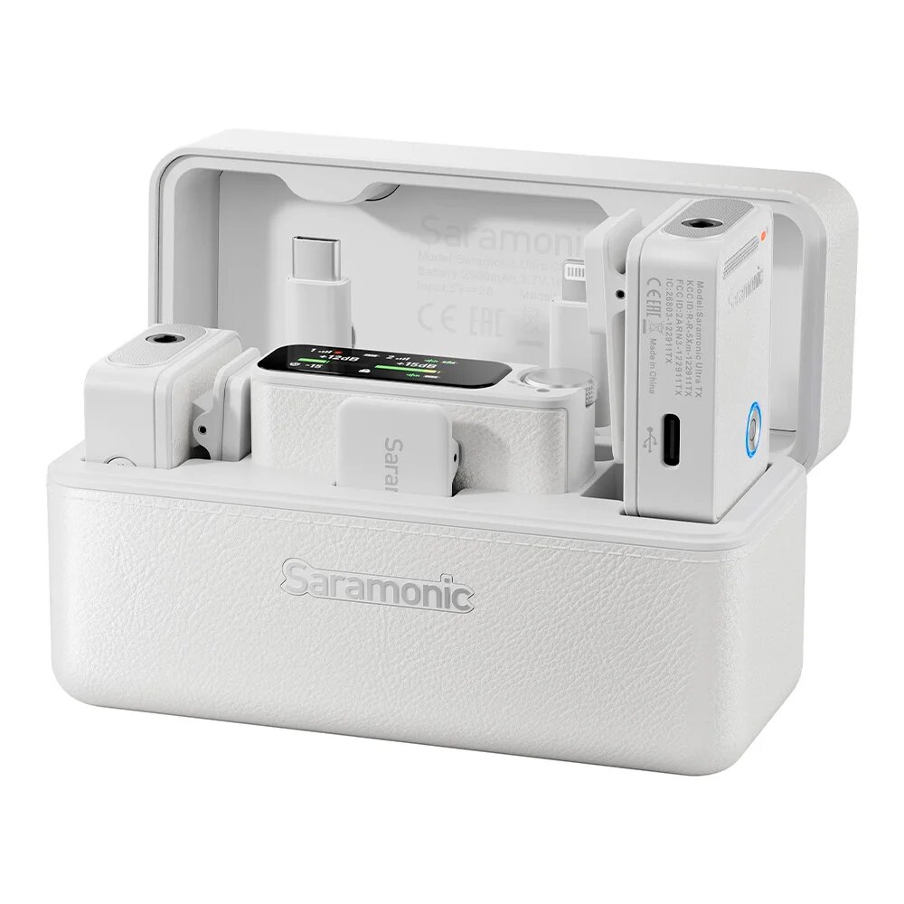 Купить Микрофонная система Saramonic Ultra 02, беспроводная, 2,4 ггц приемник и 2 передатчика с кейсом-зарядкой, white с доставкой по всей России.