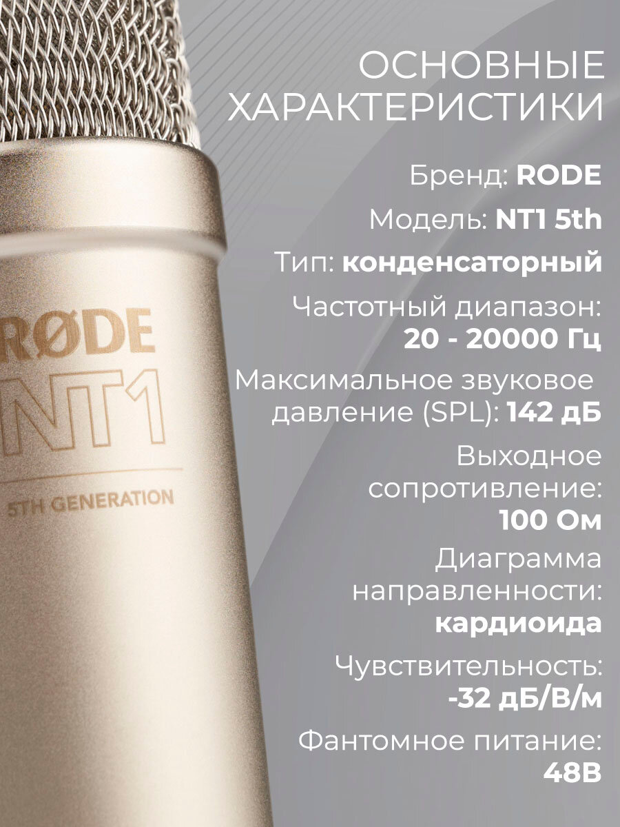 Студийный микрофон RODE NT1 5th Generation Silver , конденсаторный, серебристый: сравнение цен, характеристики, фото, актуальное наличие и цены.