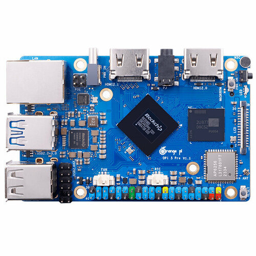 C 4 ГБ/8 ГБ/16 ГБ LPDDR5, с обработкой дисплея до 8K и поддержкой модуля eMMC или SPI Flash (любого), Wi-Fi5, BT5.0 и поддержки BLE. Orange Pi 5 Pro предоставляет множество интерфейсов, включая выход HDMI, порты GPIO, USB2.0, USB3.1, разъем для наушников 3,5 мм, порт Gigabit LAN с поддержкой PoE + (требуется PoE + HAT) и т. д. с разъемом M.2 M. Слот для ключа, поддерживающий установку твердотельного накопителя NVMe или твердотельного накопителя SATA.
