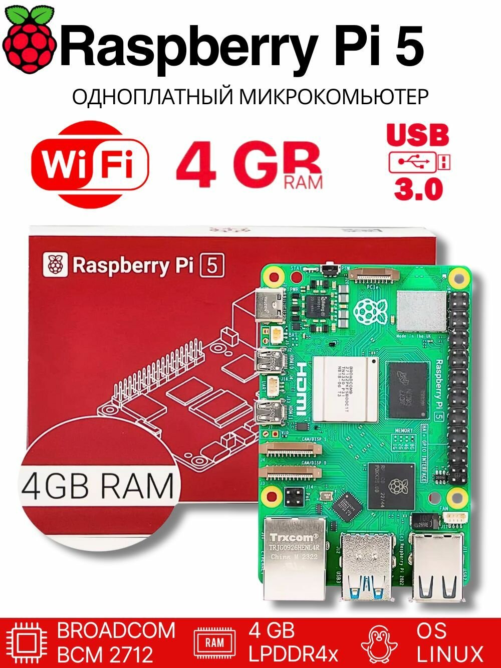 Увеличение производительности процессора в 2-3 раза Новый 64-битный четырехъядерный процессор Arm Cortex-A76, лежащий в основе Raspberry Pi 5, работает на частоте 2,4 ГГц с криптографическими расширениями, кэшем L2 объемом 512 КБ на ядро и общим кэшем L3 объемом 2 МБ. Эта новая SoC Broadcom BCM2712 (система на кристалле) обеспечивает увеличение производительности в 2–3 раза по сравнению с Raspberry Pi предыдущего поколения!