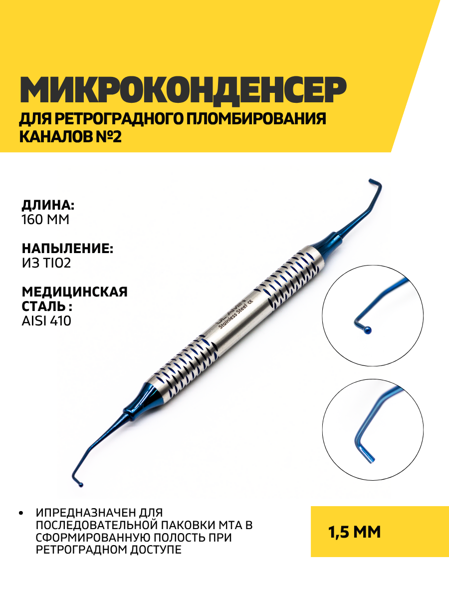 Купить Микроконденсер для ретроградного пломбирования каналов №2, нержавеющая сталь с доставкой по всей России.