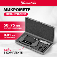 Купить Микрометр механический Matrix, 50-75 мм, инструментальная сталь, с установочной мерой, в кейсе, 317755 с доставкой по всей России.