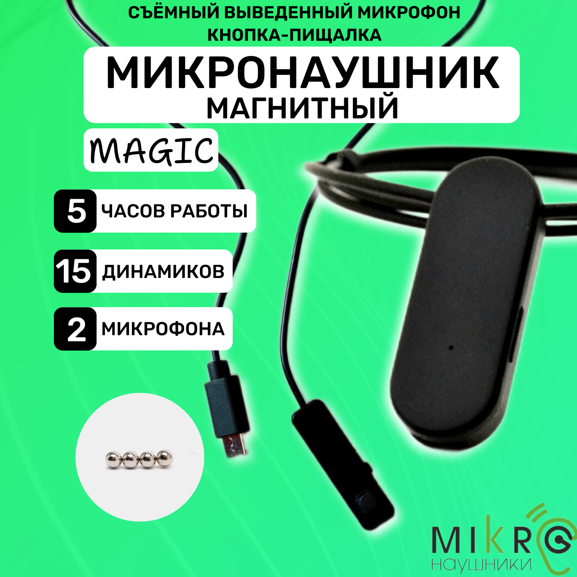 Купить Микронаушник магнитный беспроводной Magic , 2 микрофона, со съёмным выносным микрофоном и кнопкой-пищалкой микронаушник с доставкой по всей России.