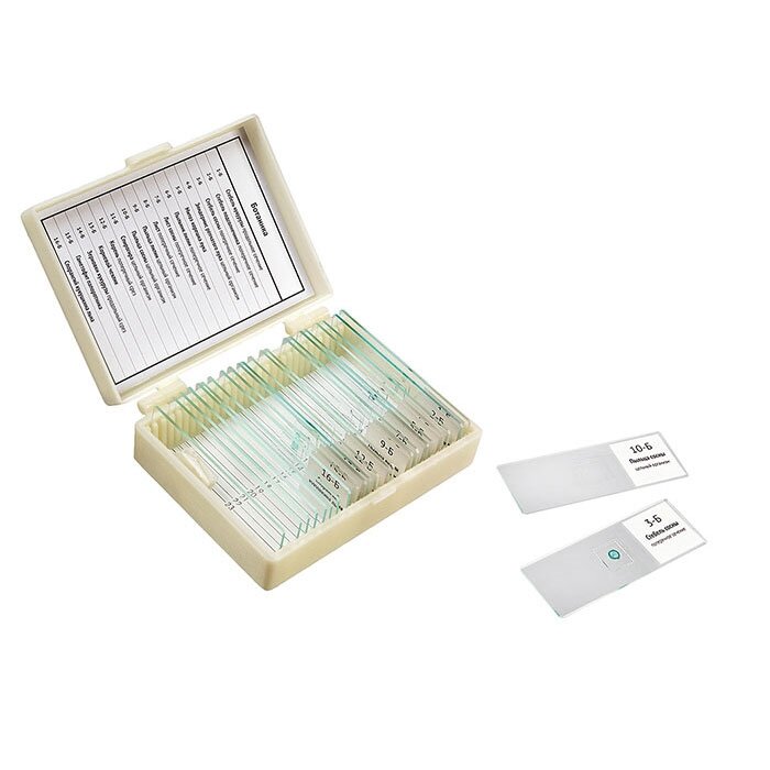 Набор микропрепаратов (100 шт) биология, анатомия и ботаника для микроскопа. Русский язык. Стекло. Микропрепараты для микроскопа.