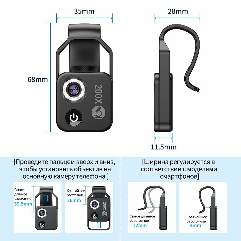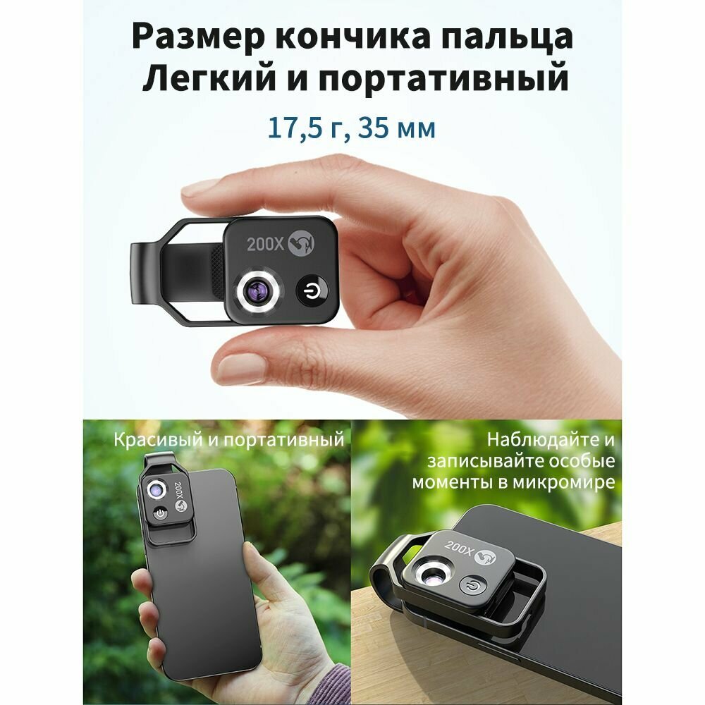 Купить Микроскоп для телефона 200x с LED подсветкой и универсальным креплением, APEXEL MS002 с доставкой по всей России.