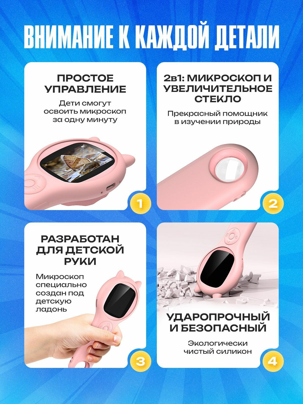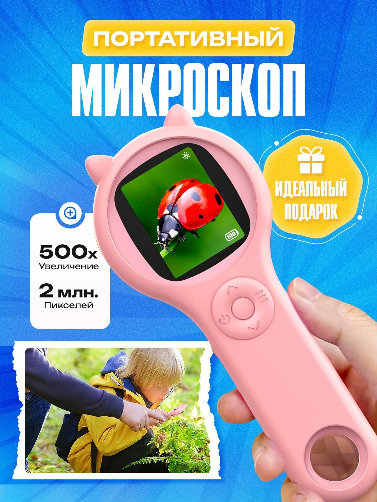 Микроскоп Fommi M1, детский, 500х увеличение, подсветка, IPS-экран, розовый: сравнение цен, характеристики, фото, актуальное наличие и цены.
