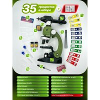 Оптический микроскоп с образцами для проведения “всех типов” научных исследований и опытов и комплектацией многоразовых инструментов. Создавайте и рассматривайте *жидкие* и *твердые* образцы всей семьей, пробуждая у ребенка интерес к науке. Игрушка + настоящий профессиональный лабораторный гаджет для предметного изучения бесконечного множества образцов из окружающего мира. Исследуйте кусочек лука, как лопаются пузырьки газировки или движение бактерии в водопроводной воде с увеличением от 100 до 1200 раз. В наборе есть держатель для телефона (адаптер) для подключения смартфона. Вы и дети можете рассматривать все в деталях на экране мобильной электроники и создавать цифровое видео в процессе наблюдения. Добавили микропрепараты (готовые образцы растений и насекомых) для развивающих экспериментов. Коробку комплектуем с инструкцией *на русском языке* + консультируем по настройке микроскопа, для этого напишите нам. Наши контакты есть на последних фото к товару. Биологический микроскоп монокулярный оснащен 3 режимами увеличения и подсветкой, что повышает качество изображения. Установили стеклянный окуляр с кольцом ручной регулировки, предметный столик и лампа подсветки из пластика и стекла. При производстве используется объектив с стеклянными линзами. С компактным, портативным микроскопом дети погружаются в игровой процесс и чувствуют себя начинающим профессиональным ученым. Он является универсальным выбором для изучения химии и ботаники, удивительных домашних развлечений вместе со взрослыми, развития навыков во время учебного процесса. Интересная подарочная идея, сюрприз для маленьких девочек и мальчиков, юных школьников и даже подростков на день рождения, новый год, 1 сентября, 8 марта, 23 февраля и другой праздник. В магазине есть 12 микроскопов с микропрепаратами разной формы, цвета, материала и комплектации. Выбирите тот, что больше понравится. ! - Сейчас идут акции и распродажи, вы можете купить наш микроскоп с стеклами в подарок со скидкой.