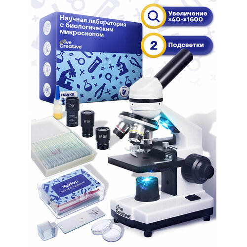Благодаря расширенной комплектации это микроскоп с образцами, готовый к работе сразу после покупки — в набор входит 30 подготовленных микропрепаратов и всё необходимое для самостоятельного создания образцов.