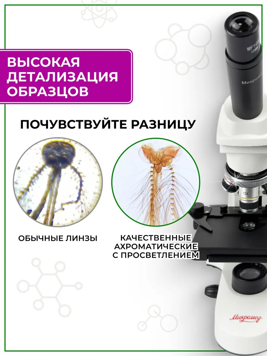 3. Объективы ахроматы в комплекте с окулярами обеспечивают высокое качество оптики, позволяя получить качественные яркие изображения микропрепаратов на данный световой микроскоп.