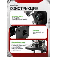 | Подробная комплектация | Штатив с основанием, с механизмом фокусировки, верхней и нижней светодиодными подсветками Револьверный механизм на 3 объектива Насадка монокулярная Линза Барлоу 2х Столик прямоугольный с конденсором и линейкой Объектив-ахромат 4х Объектив-ахромат 10х Объектив-ахромат 40х Окуляр 10х Окуляр 16х Окуляр 20х Кабель питания USB Руководство по эксплуатации |
